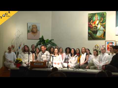 Janajanmadi gibt im Haus Yoga Vidya Bad Meinberg regelmäßig Ausbildungen zum Ayurveda Gesundheitsberater. Hier singt er mit einer Gruppe zum Abschluss der Ausbildung das Gayatri Mantra im Satsang.